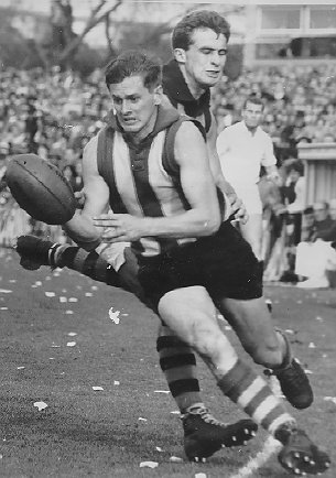 They liked the way he went in for the ball and the Senior selectors finally bowed to the inevitable and selected him. He managed 15 games as a half back or half forward flanker, and followed this up with 12 games in 1963.