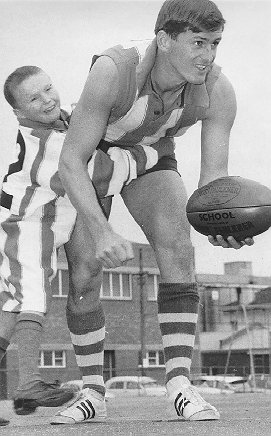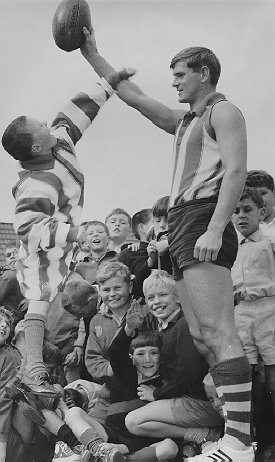 from the grasp of North Melbourne's Daryl O'Brien during a footy clinic